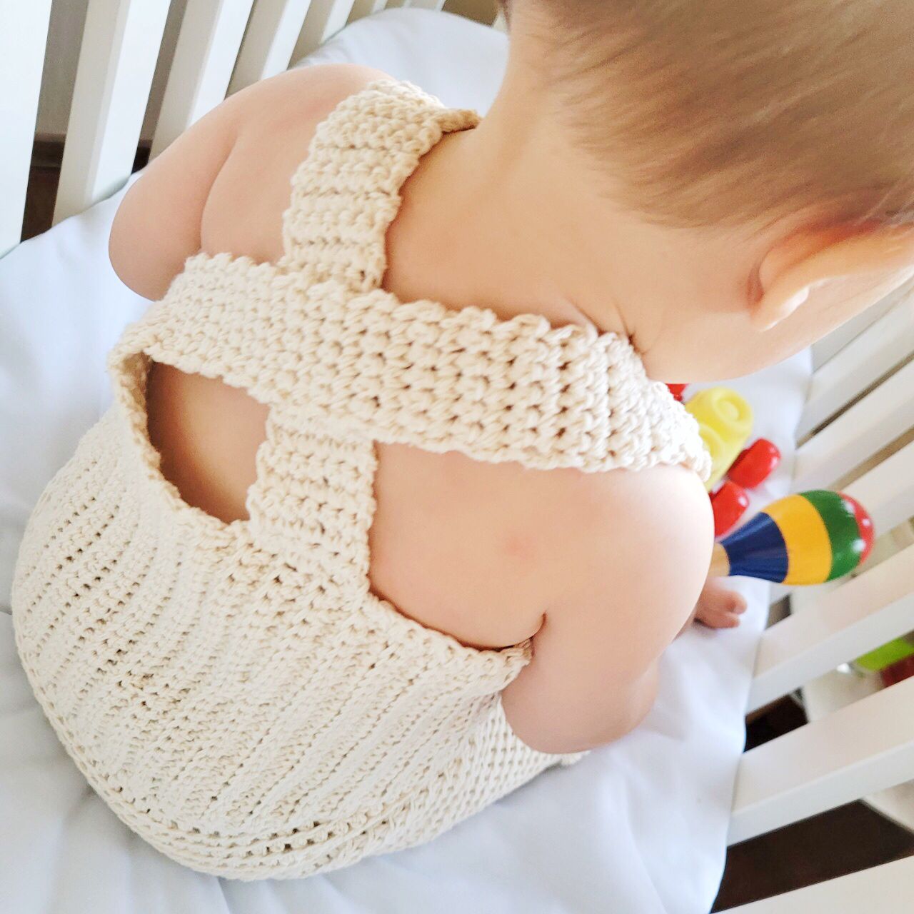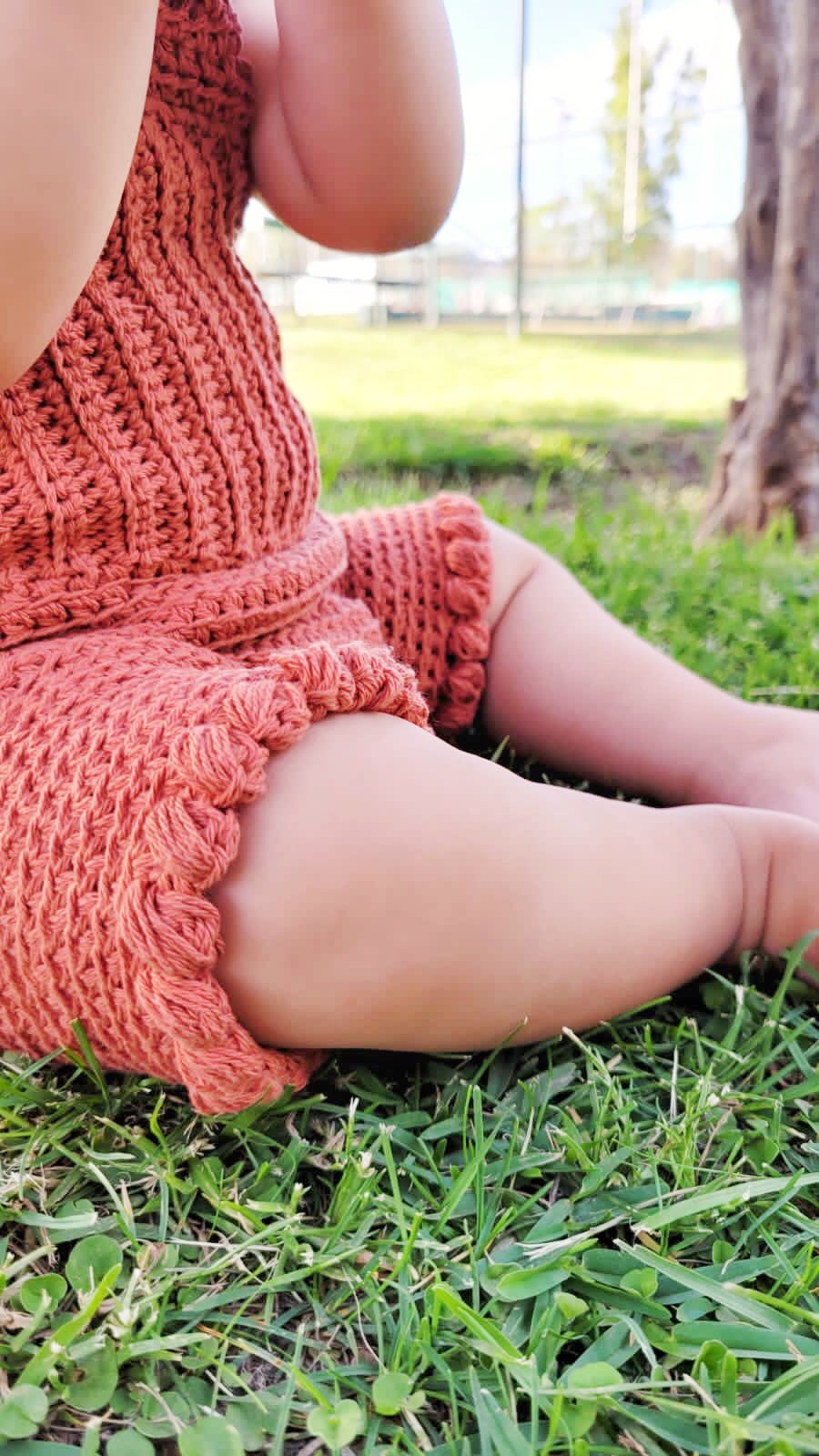 Body tejido a crochet a mano realizado en hilo de algodón doble de 1mm de primera calidad, material respirable y suave para el contacto con la piel de tu bebé.