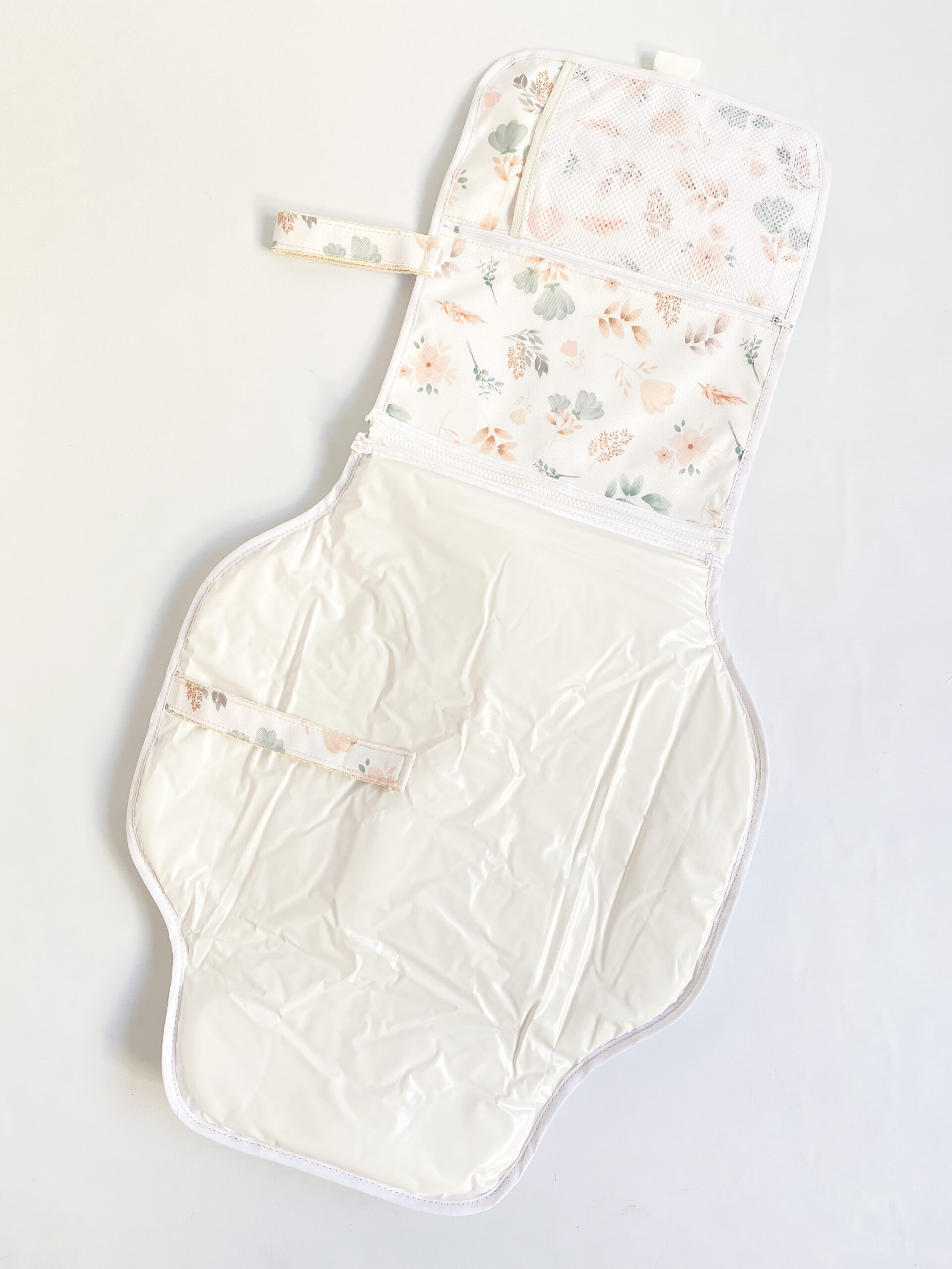 En su interior tiene un bolsillo con cierre y otra división con velcro para organizar pañales, toallitas, o lo que quieras!