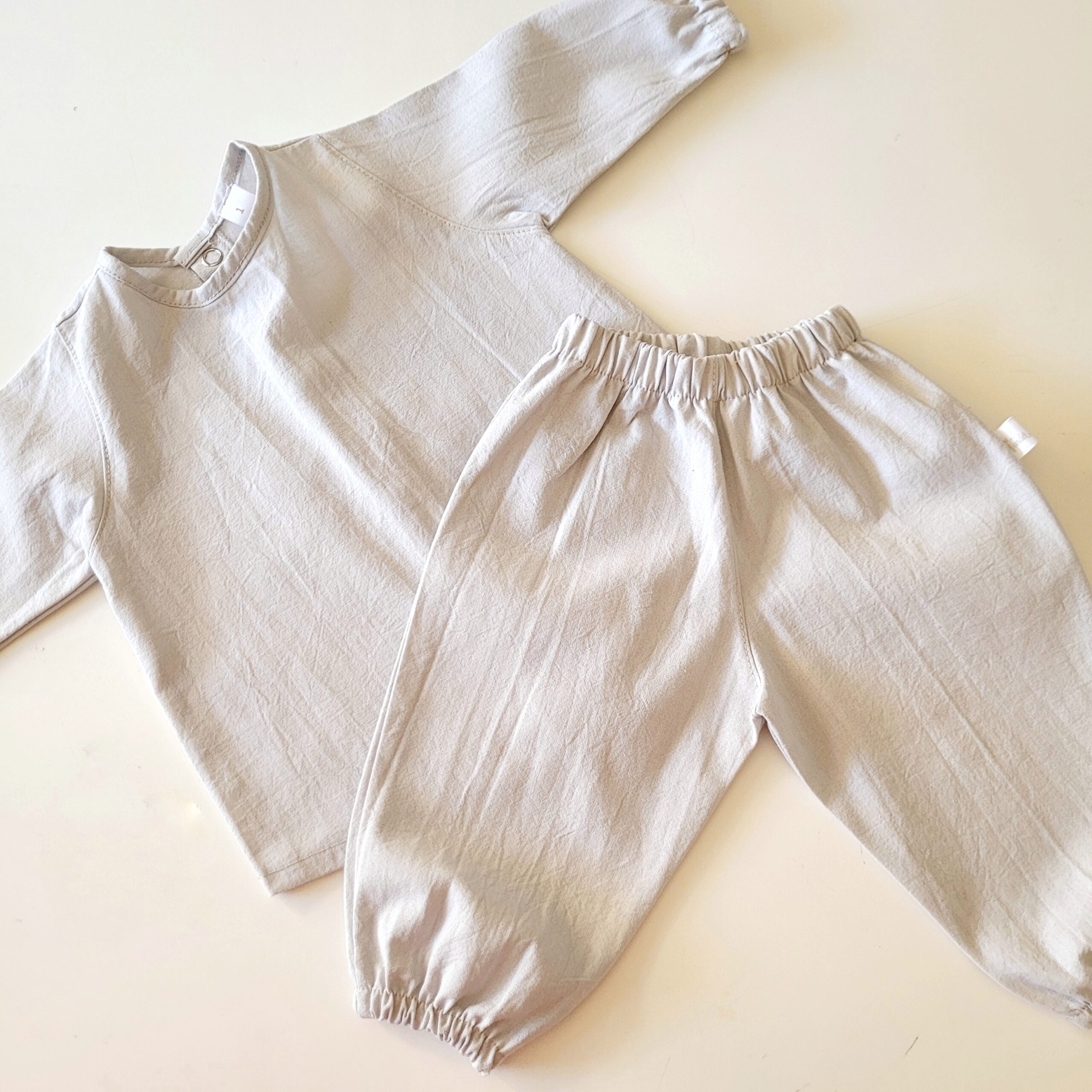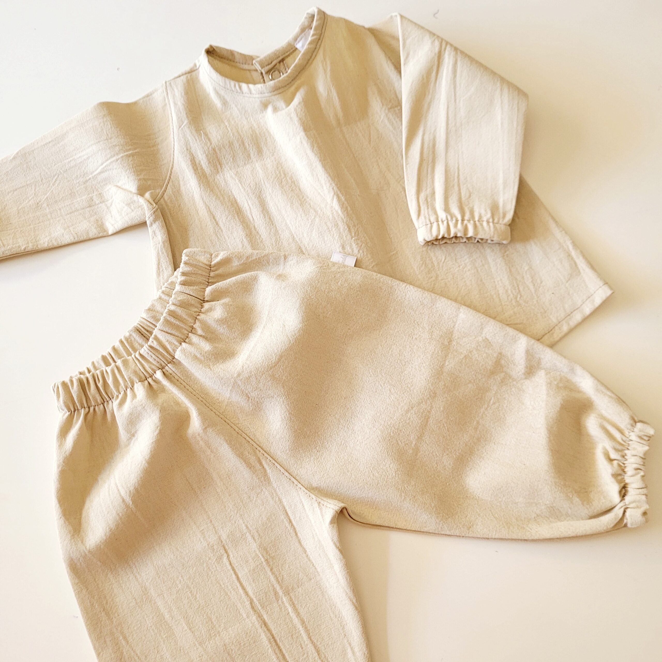 Conjunto de remera y pantalón realizados en tusor 100% algodón.