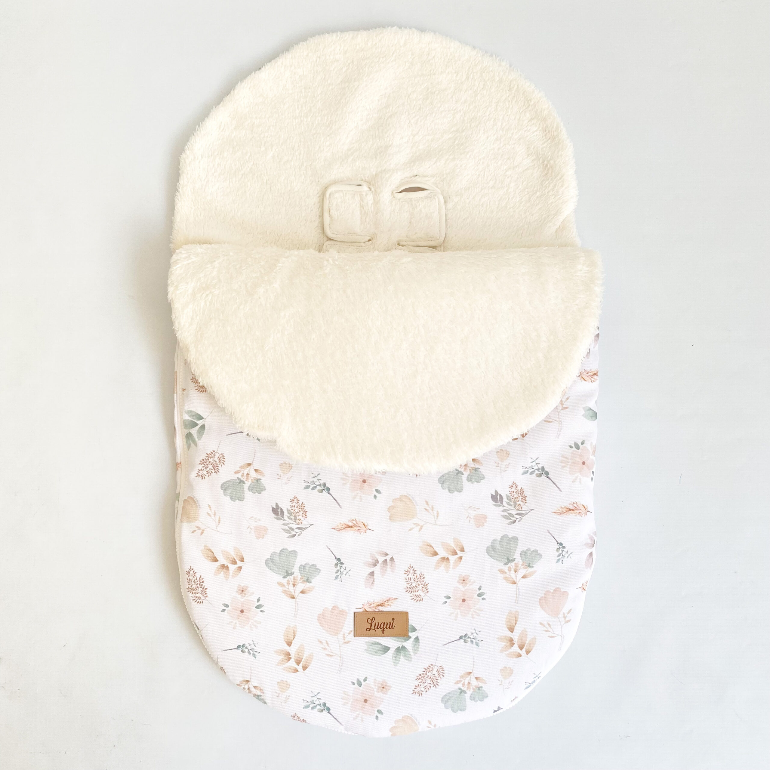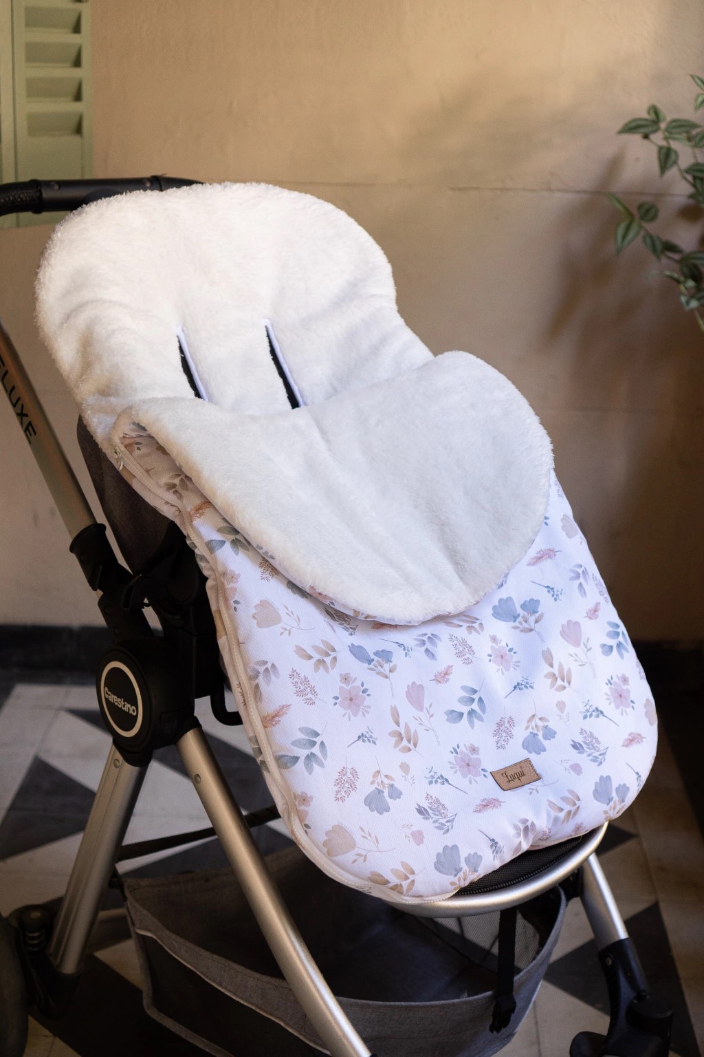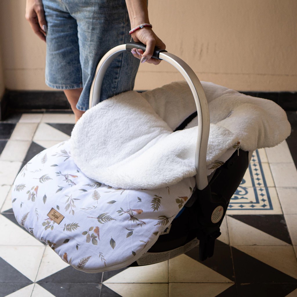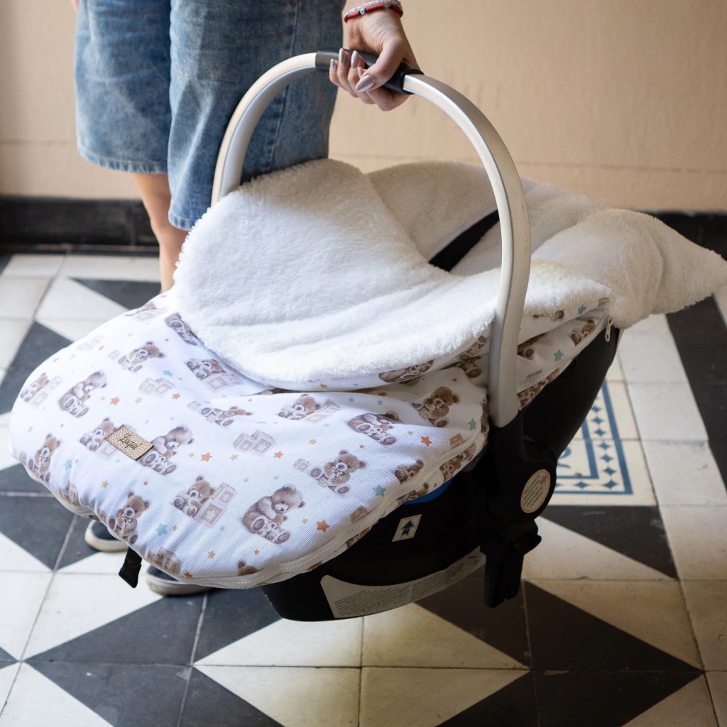 Tapa desmontable, rellena con guata 200 gr. Si entrás en un lugar calefaccionado, podés sacar la tapa y que tu bebé siga cómodo en su cochecito/huevito.